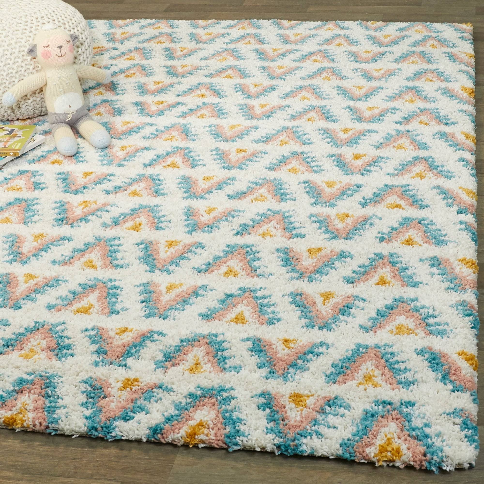 Amelia Rainbow Print Shag Kids Area Rug - 5&3x22 Round - Navy Blue
