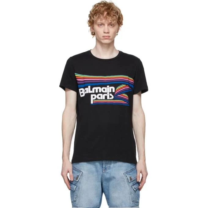 Balmain Black Mulitcolor Logo T-Shirt
